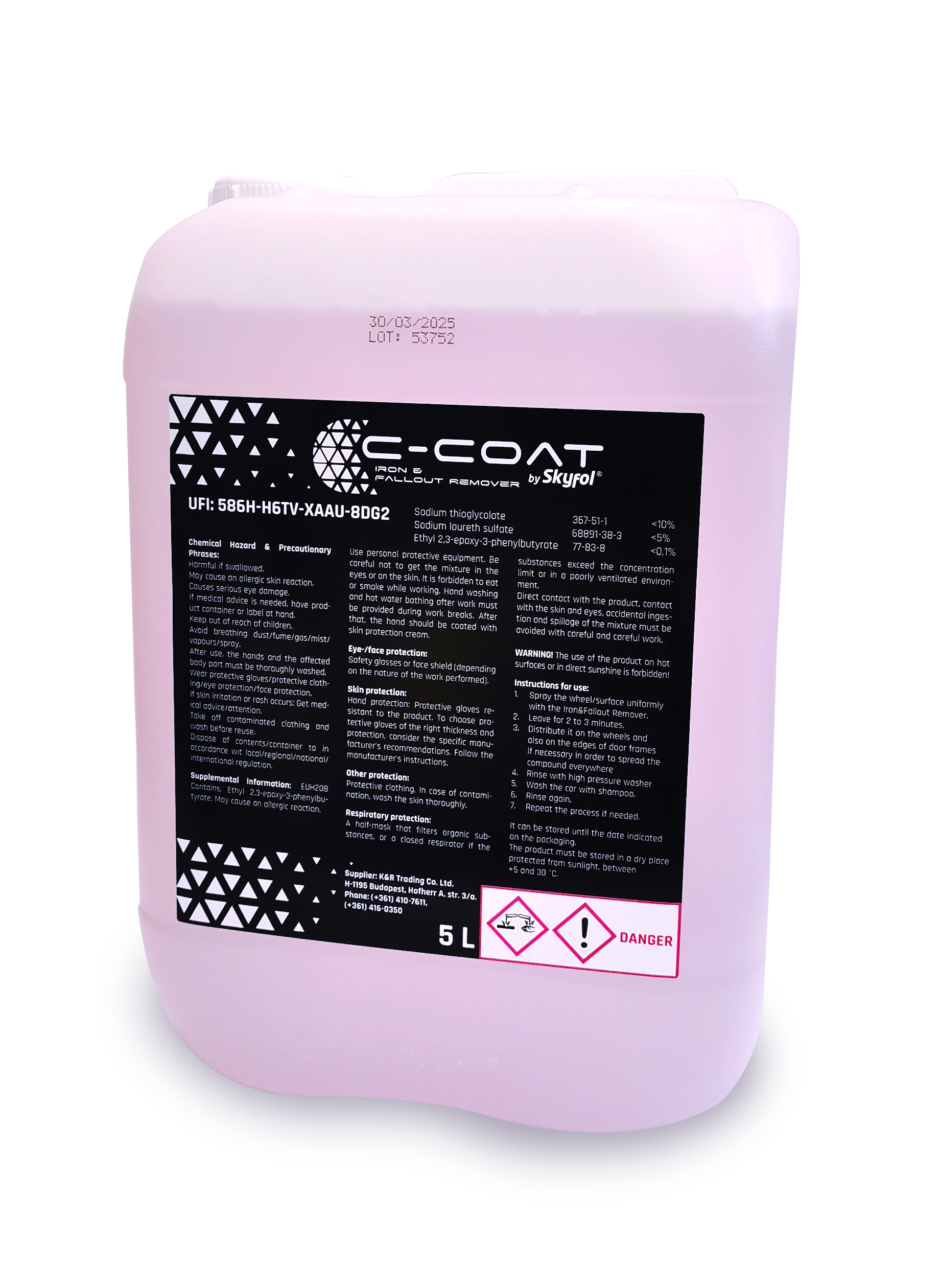 C-Coat Fallout & Iron Remover je pH neutralno sredstvo za uklanjanje željeza koje otapa i uklanja čestice željezne kočione prašine i naslage s boje, kotača, kroma itd. UPOZORENJE! Zabranjena je uporaba proizvoda na vrućim površinama ili na izravnoj sunčevoj svjetlosti!
